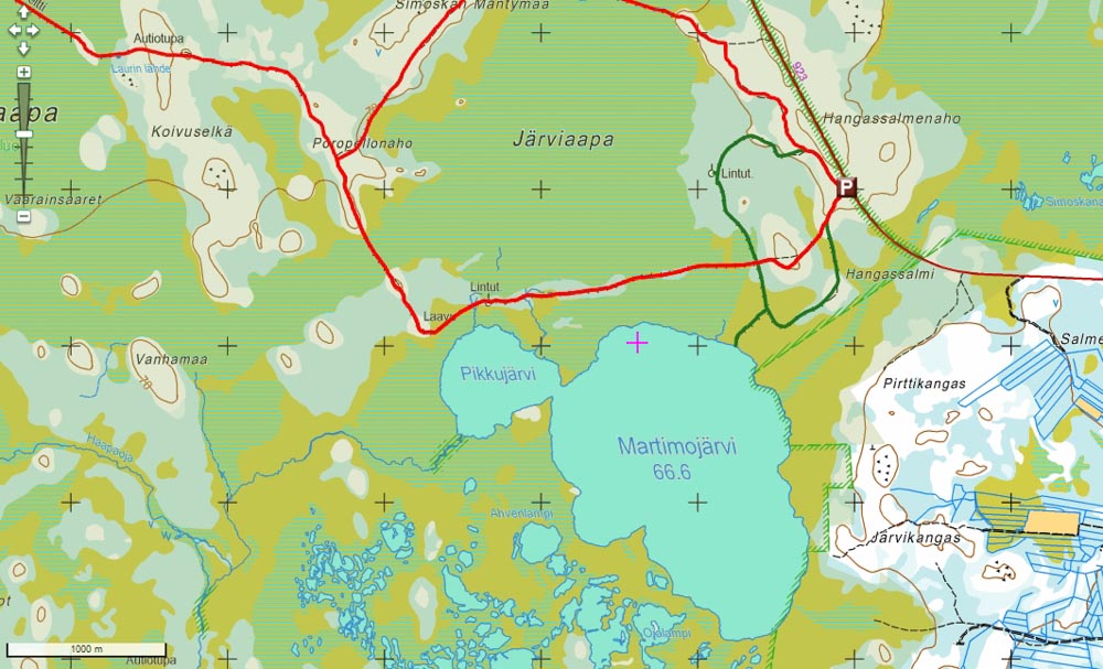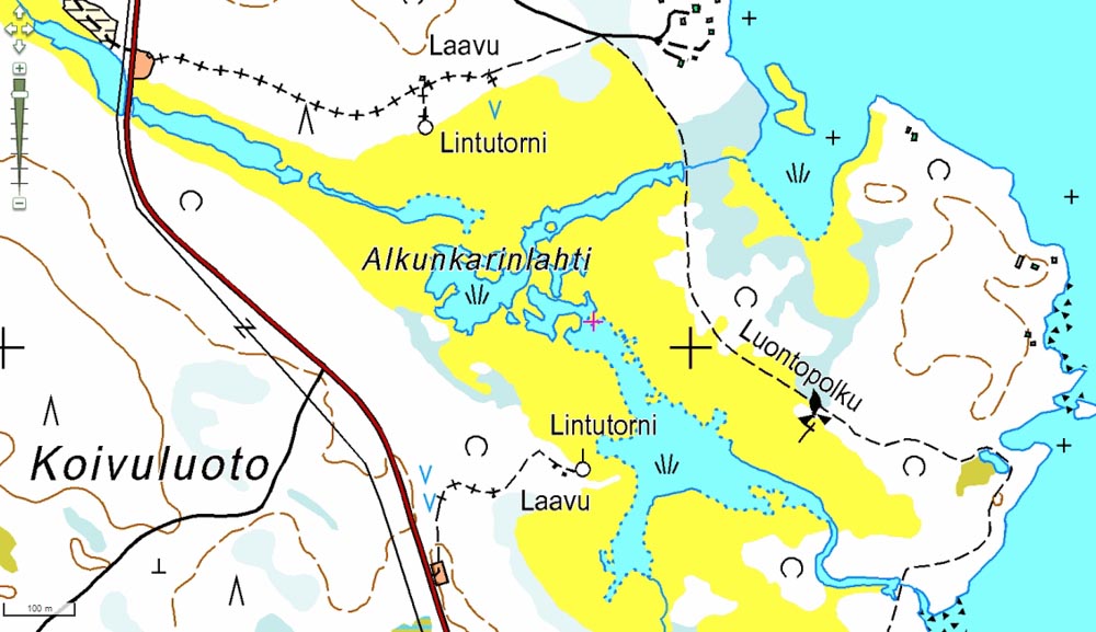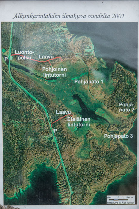 Ajo-ohje: Ison Meltosjäven lintutornin risteyksestä tietä 932 reilu kilometri Raanujärven suuntaan. P-paikka tornin kohdalla tien oikealla puolella.
