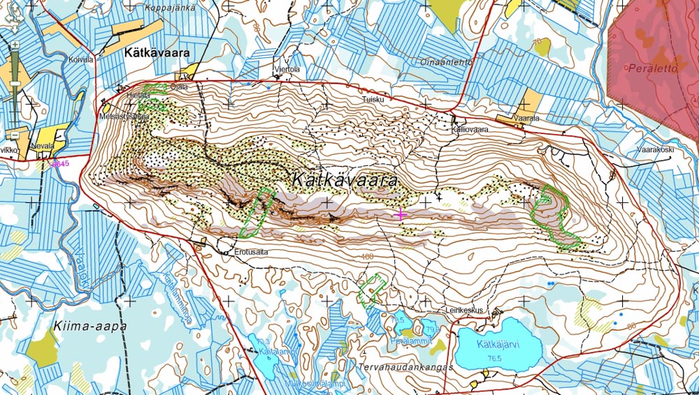 Kätkävaaran luontopolku on kunnostettu 2010-2013 jolloin valmistuivat esteetön reitistö, laiturit ja luontotorni vaaran huipulle. Merkityn reitin varrella on lisäksi kaksi tulipaikkaa ja tulistelukota vaaran huipulla. Reitti on 7 km pitkä. Ensimmäiset 300 m on esteetöntä pitkosta laavulle asti. Perälammen ympäri kiertää erillinen 600 m esteetön reitti. Esteettömät palvelut: laavu, wc ja puuliiteri sekä laiturit Perälammen rannassa.