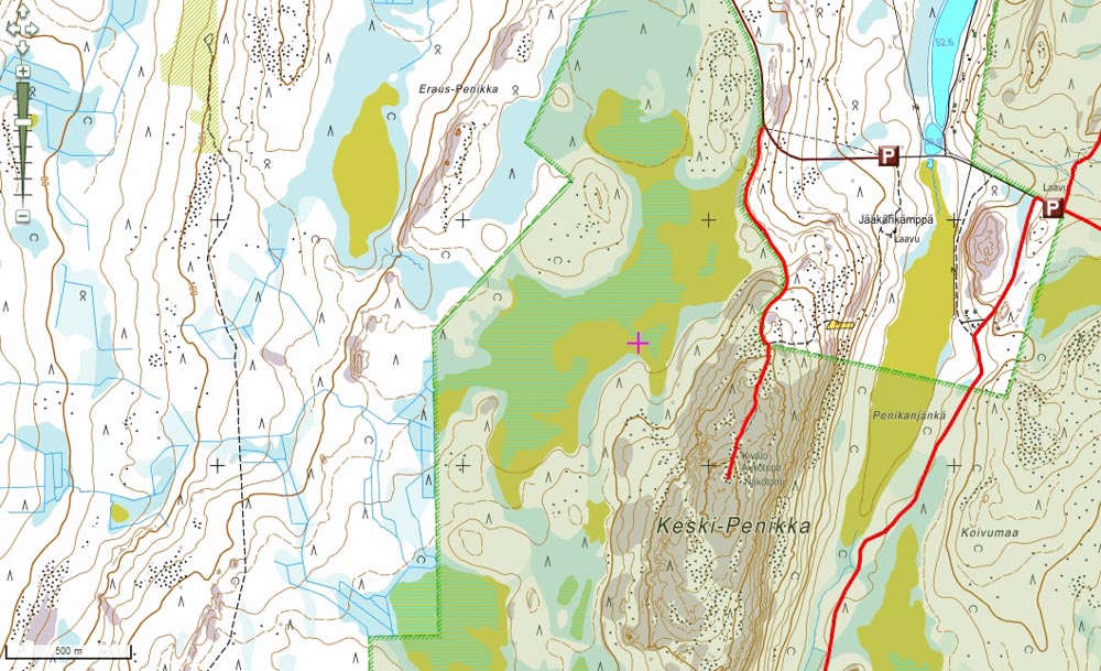 Ajo-ohje: Aavasaksalta 8 km Raanujärvellepäin tie 932. Ei parkkialuetta, mutta tienluiskaan mahtuu pari autoa peräkkäin.