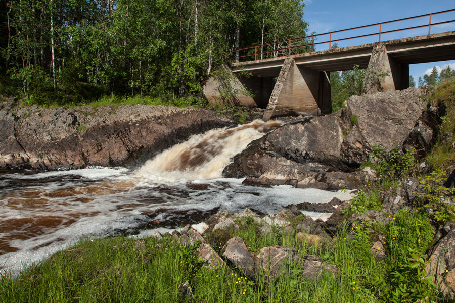 Kukkolankoski, taustalla Ruotsin puolen rakennuksia, kuvat Seppo Kemppainen